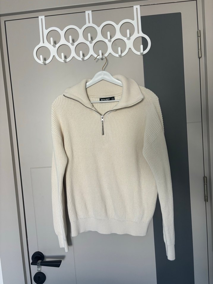 Yarım fermuarlı, uzun kollu, yünlü beyaz-gri erkek triko. 1 ay önce pullbeardan alındı 1700 tl ye sadece iki defa giyildi m bedene uygundur kalıbı geniştir boydan kısa geldiği için giymiyorum ürün yeni gibidir bir kusuru yoktur