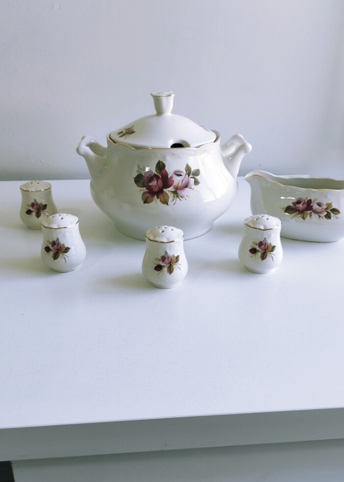 Ürün çeyizimden hiç kullanmadım. en az 35 yıllık olmasına rağmen çiçeklerinde hiçbir solma yok, görsellerde de görüldüğü gibi. Sadece çorba kasesi bir kez kullanıldı diğerleri hiç kullanılmadı. Hiçbir şekilde zarar görmeden size ulaşacaktır.