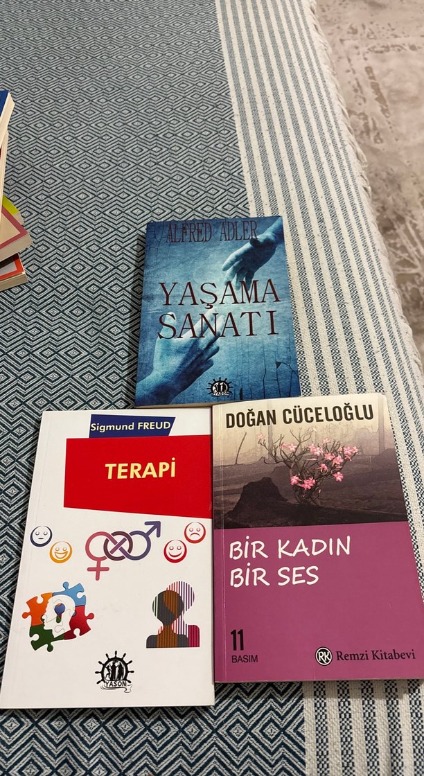 Alfred Adler'ın 'Yaşama Sanatı' psikolojik bakış açılarıyla yaşam sanatını inceliyor. Yanında Sigmund Freud'un 'Terapi' ve Doğan Cüceloğlu'nun 'Bir Kadın Bir Ses' kitapları yer alıyor.