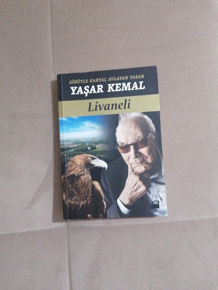 Yaşar Kemal'in 'Gözöyle Kartal Avlayan Yazar' adlı romanı, kartal ve yazarın portresiyle kaplanmıştır. Livaneli yayınevinden.