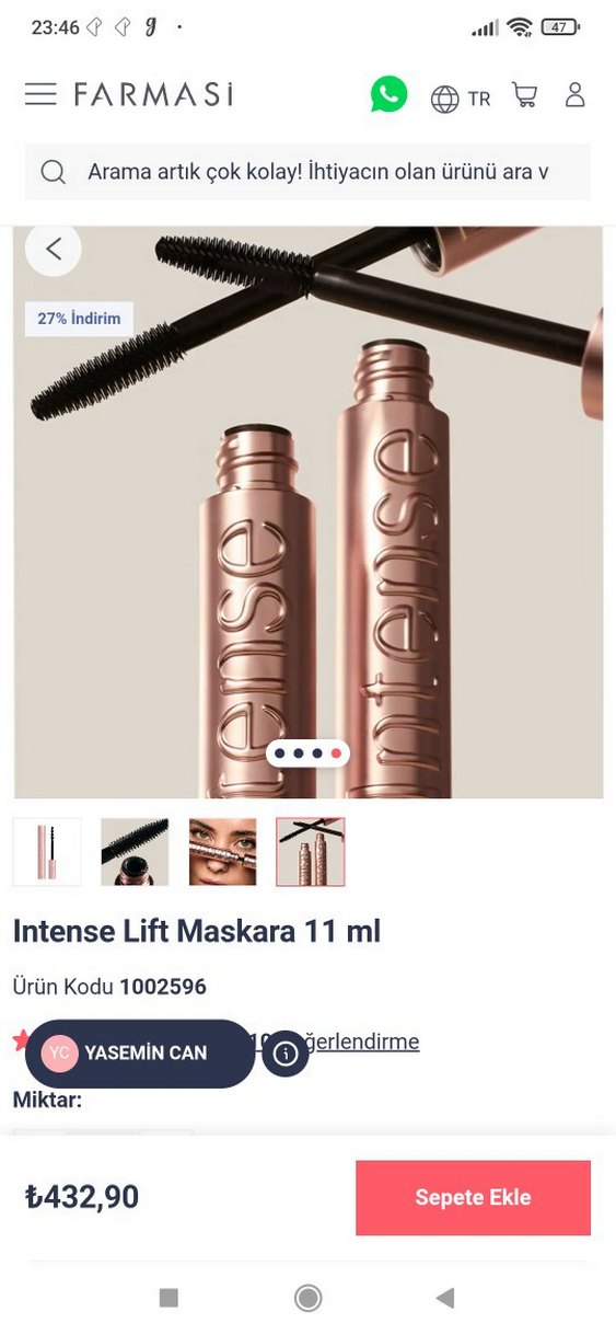 Yasemin Can Intense Lift Maskara, parlak bej renkte, kirpikleri kaldırıcı etkisiyle belirginleştirir. 11 ml hacmindedir.