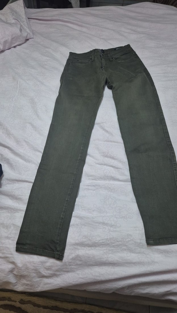 yeşil renk, regular fit bayan denim pantolon. Normal boy, desen içermeyen, gündelik kullanıma uygun rahat ve şık tasarım.