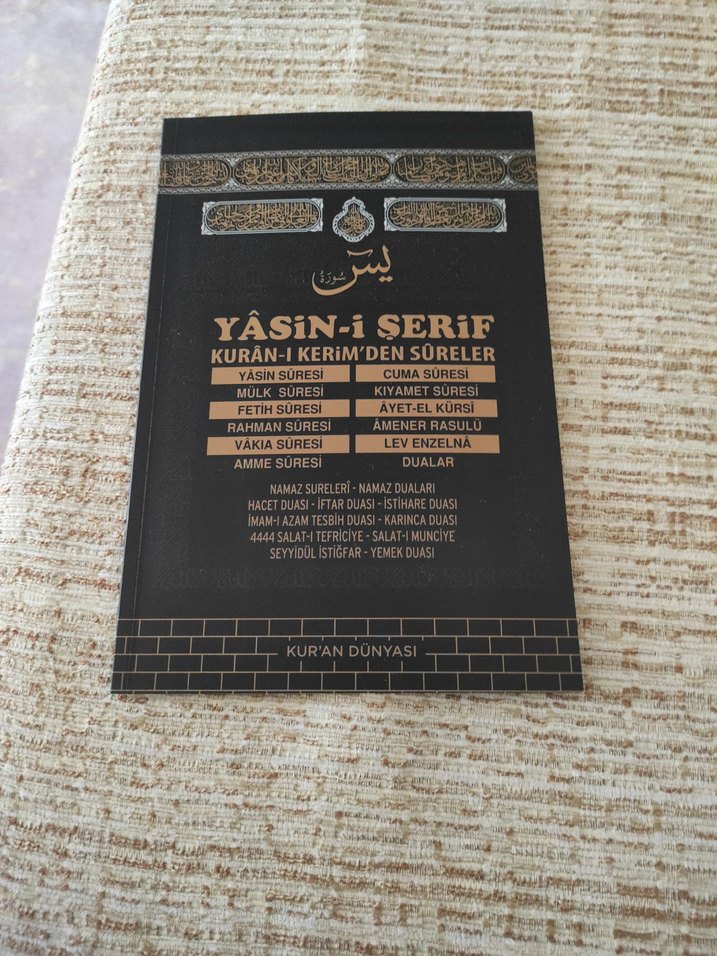Yasin-i Şerif ve Kur'an-ı Kerim'den Yasin, Mülk, Fetih, Rahman, Vakıa, Amme gibi sureler ile namaz, dua ve istiğfar dualarını içerir. Yasin kitabı yeni Türkçe Arapça meal bir arada