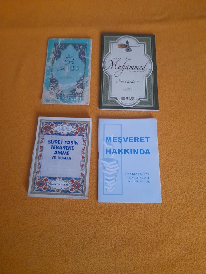 Hz Muhammed kitabı sayfa sayısı 70 sayfadır Erkam yayınevine aittir dûre-i Yasin Tebareke Amme ve dualar kitabı pamuk yayınları'na aittir kitap sayfa sayısı 127 sayfadır meşveret hakkındaki kitabı 32 sayfadır Yasin kitabı oldukça yıpranmıştır.