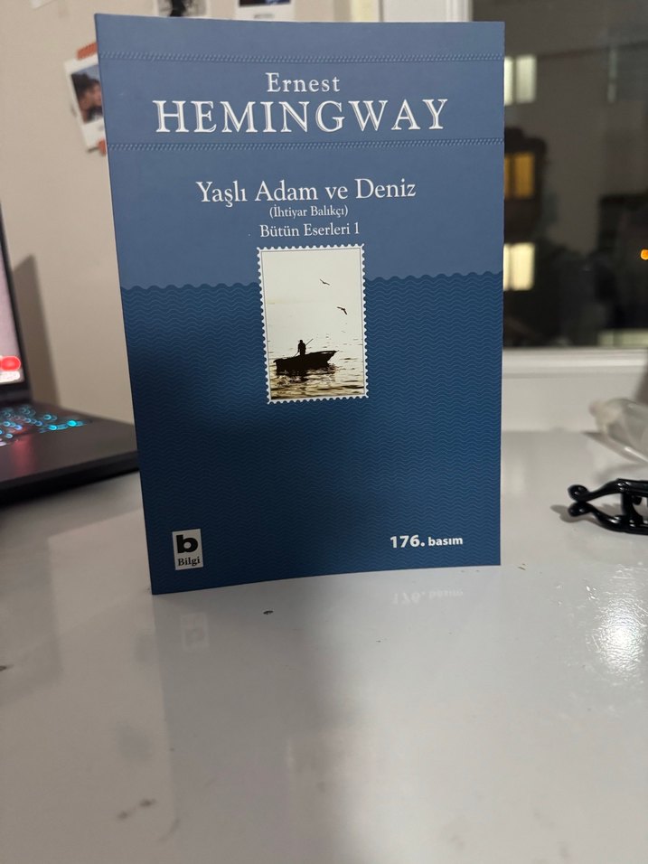 Ernest Hemingway'nin "Yaşlı Adam ve Deniz" romanının 176. basımı, bütün eserler serisinden bir kitap.