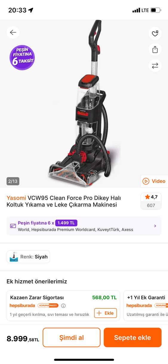 Yasomi VCW95 Clean Force Pro, halı ve koltuklarda derin temizlik sağlar. Leke çıkarma özellikli, siyah ve kırmızı renktedir. 1 yıl ek garanti ve ek hizmet seçenekleri mevcuttur.