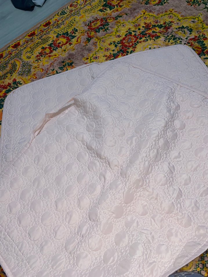 İki adet pembe Ekru yastık kılıfı birisi sökük bir adet de farklı renkli yastık kılıfı iki adette peçete