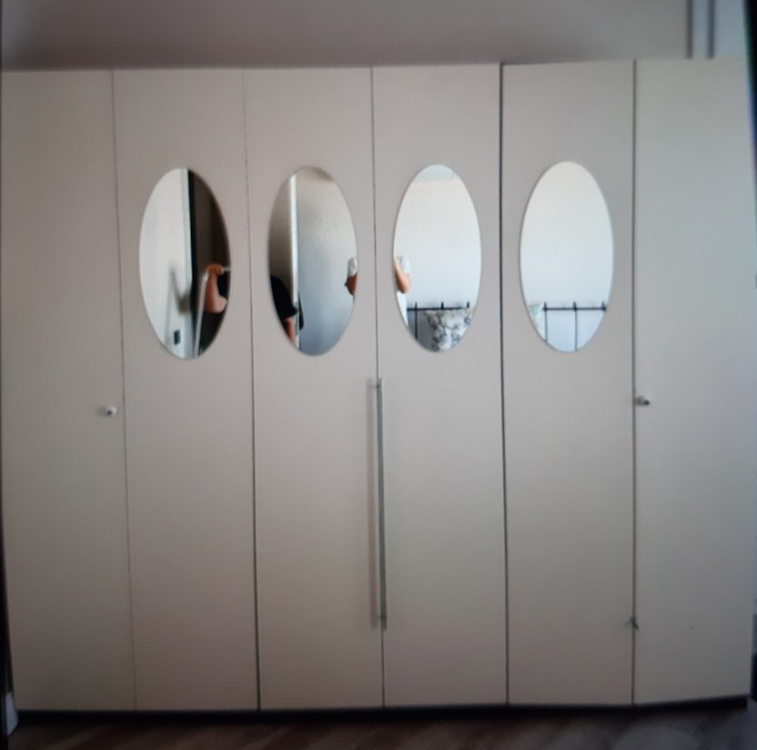 Dört kapaklı aynali gardırobunda her kapakta oval ayna bulunur. acil satilik