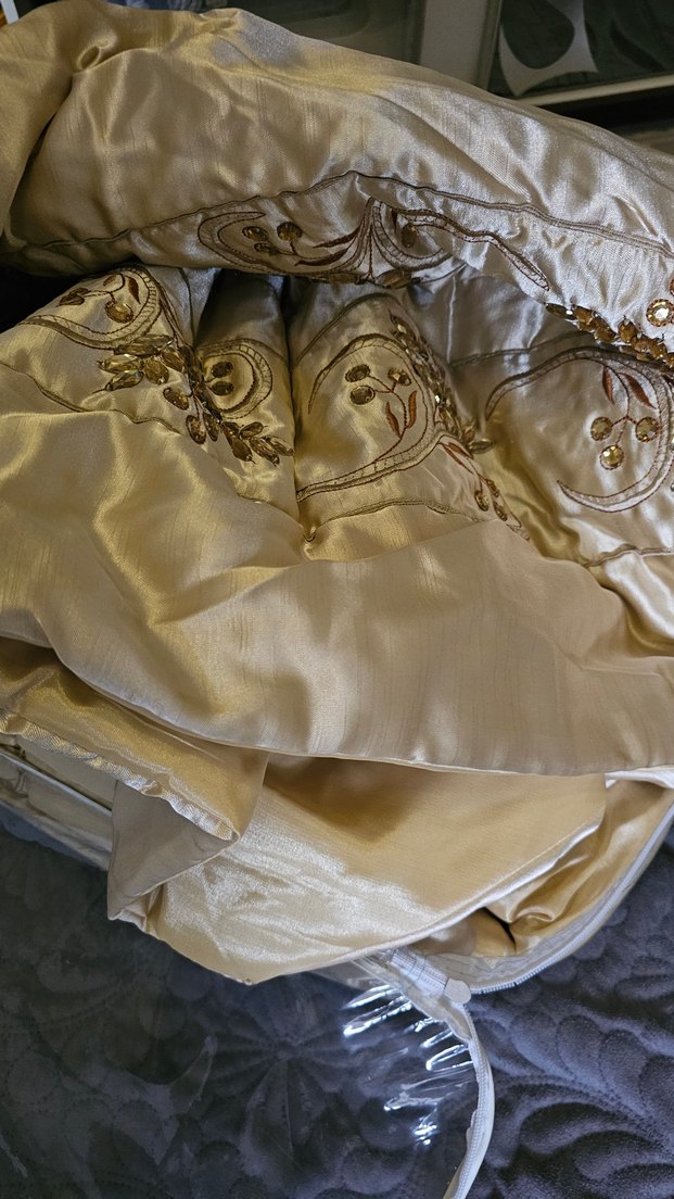 Detaylı nakışlı desenlerle klasik ve vintage şıklığı yansıtır. Hiçbir kusuru yok. Pamuk saten. Hiç kullanılmadı hala kendi poşetinde.