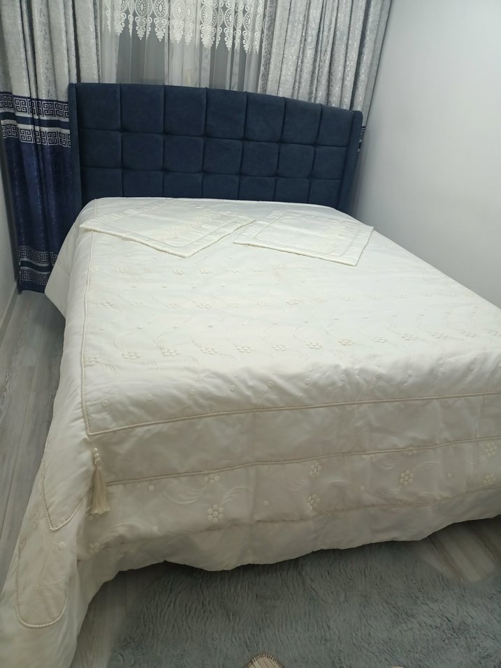 Kırık beyaz rengi yatak örtüsü çeyizlik örtü koymaya yerim olmadığı için satışta iki tane de yastık kılıfı mevcuttur.