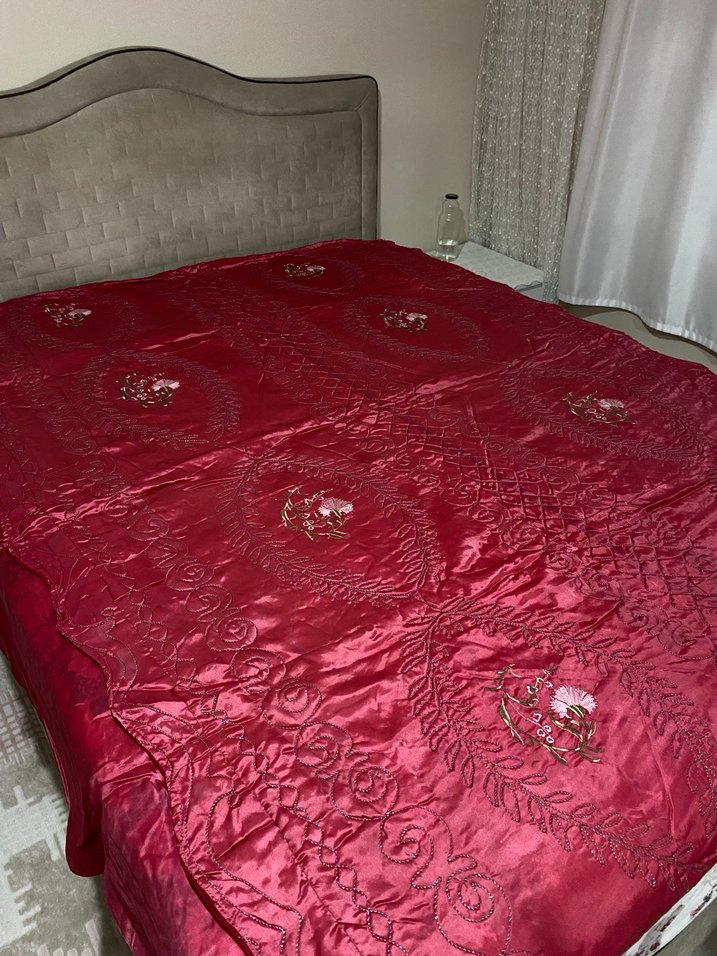 bordo yatak örtüsü, ufak bi deformesi var dikilebilir