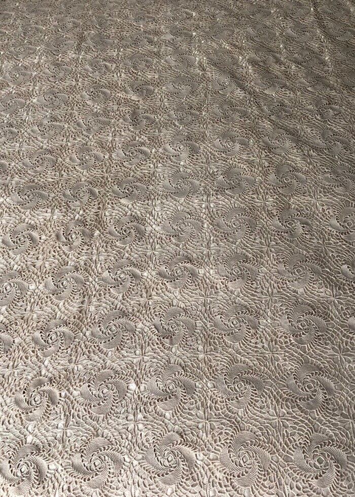Hiç bi defosu hatası yok alt kısımlarını ütüleyemediğim için kırışık üstü tamamen el emeği dantel rengi pudra pembe 2 metreye 1.5 Metre yükseklik 50 cm yatak için uyumludur
