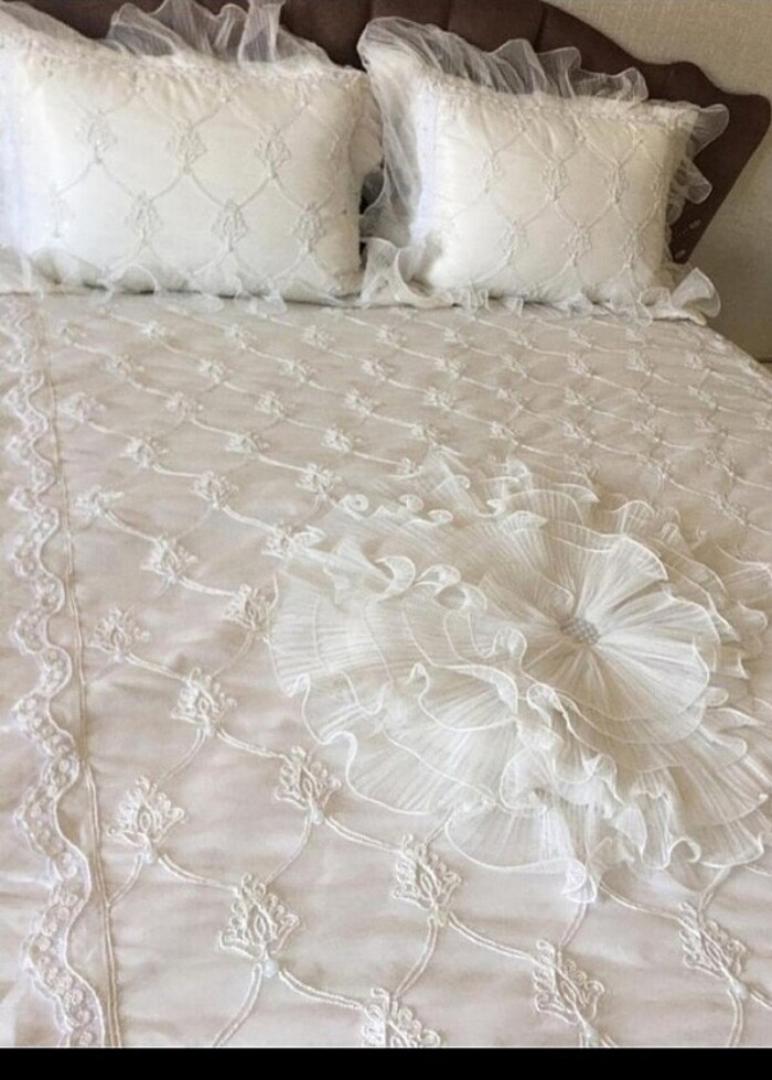 Yatak örtüsü çift kişilik fırfırlı sadece incileri dokuluyo çoğu döküldü ama kumaşı duruşu aynı resimdeki gibi güzel tarz duruyor temiz ürün arkadaşlar kanserle mücadele ediyorum destek için benden ürün alabilirsiniz temiz ürünler ve arkadaşlarınıza kuru temizleme olması gerek ve beni onerebilirsiniz iyi alisverisler