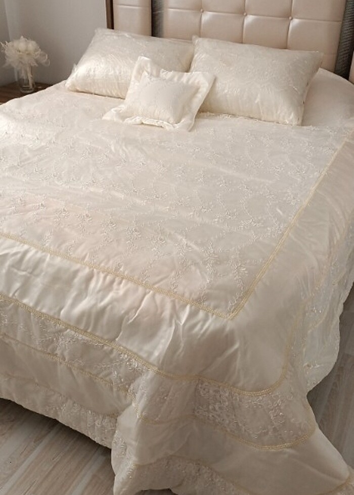 Fransız dantel gupurlu şık yatak örtüsü sıfır hiç kullanılmadı.