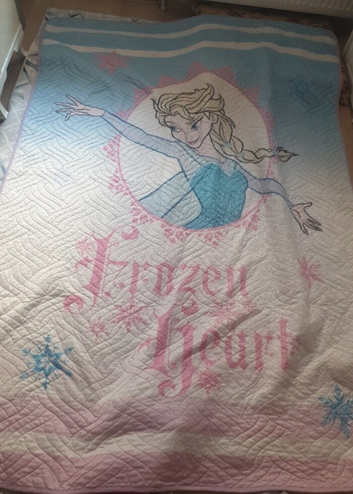 Elsa'lı kız yatak örtüsü çift taraflı kullanılabilir temiz üründür kullanımdan dolayı hafif tüylenmeler vardır