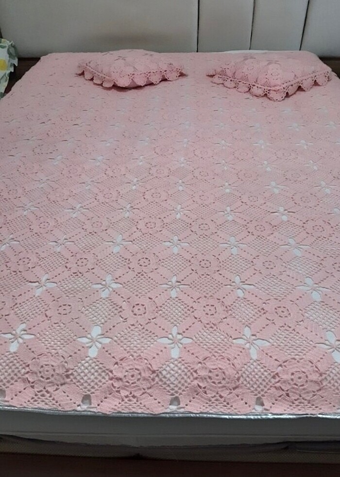 El örgüsü, bebek yünü motifli yatak örtüsü astarlıdır. hiç bir deformu yok pırıl pırıl tertemiz. Sadece alt astar kapitoneli kısmında tülerme var, son resimde gösterdim. Onun haricinde temiz el emeği ürün
