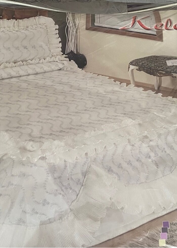 Hiç kullanılmamış yatak örtüsü görselin aynısı mürdüm renktedir