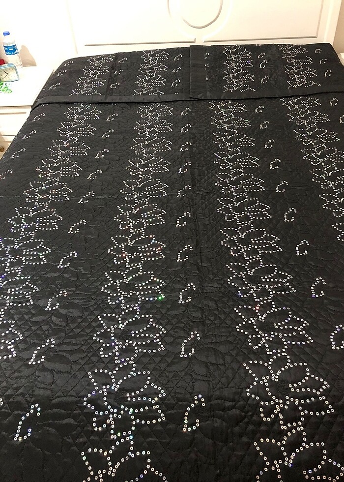 Çift kişilik saten kumaş iki tane yastık ve örtüsü fotoğrafta görüldüğü gibi temiz çom az kullanıldı