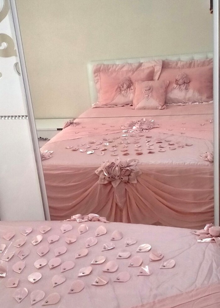 Çeyizime aldım çok az kullandım yatak odam küçük olduğundan kullanmadım tül ve fon perdeleri de mevcut
