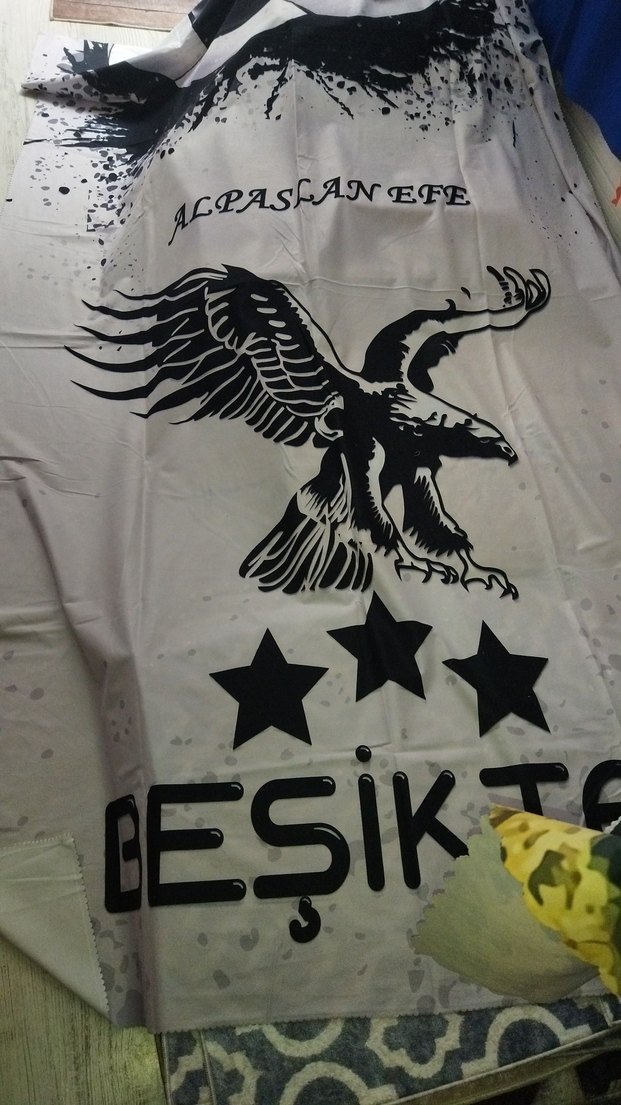 Parlak siyah renkte, cesur kartal ve üç yıldız tasarımıyla yatak örtüsü Üzerinde 'ALPASLAN EFE' yazısı bulunur. ölçüleri 1.40*2.28 isimli olduğu için uygun fiyatlı