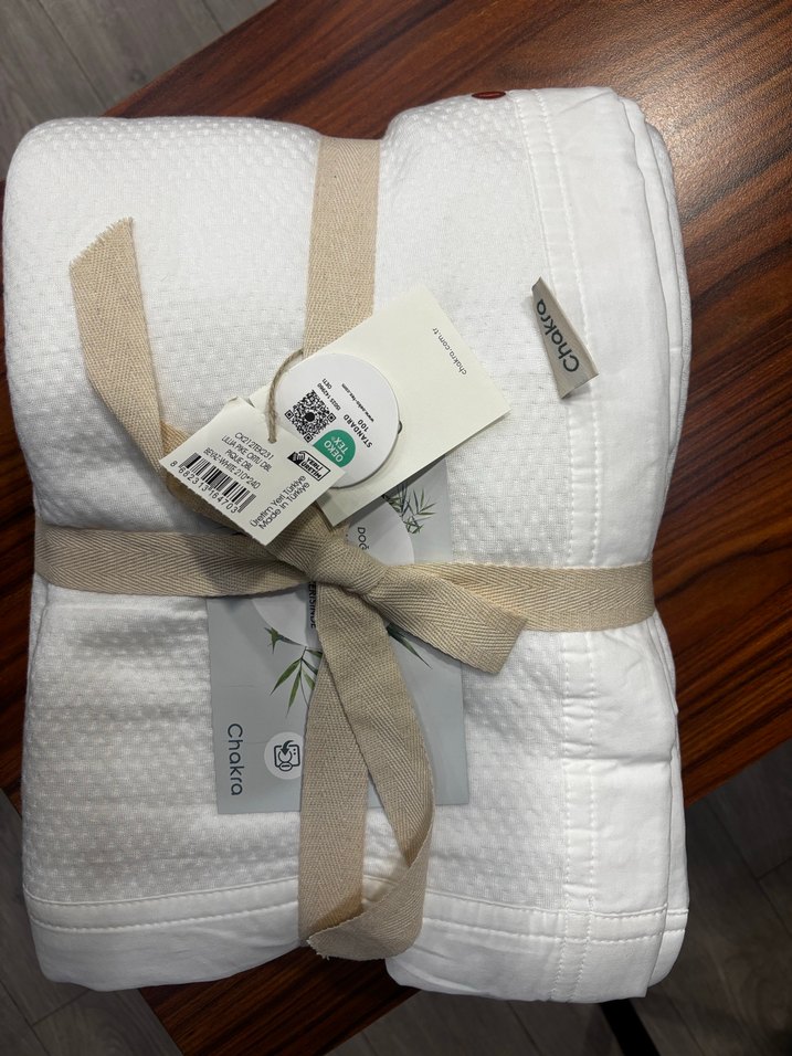 Chakra marka etiketli, açık tonlu beyaz pike. Sıfır üründür. Yumuşacık kumaşı var. Hem şık hem spor olarak kullanılabilir. Etiketi üzerinde hiç kullanılmadı. Sadece PİKE dir. Resimlerde ölçü ve açıklaması mevcuttur. İade kabul edilmemektedir. Çift kişiliktir. #Chakra # Çeyiz