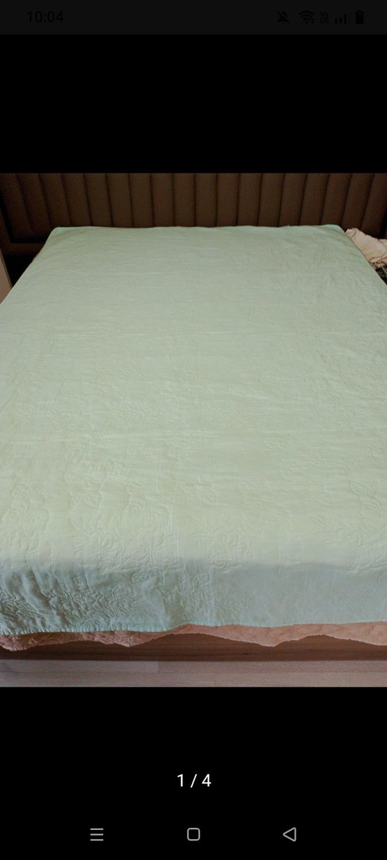yeşil renkte, ve yumuşak dokulu yatak örtüsü, yatak odasına sakin bir görünüm kazandırır. ️
