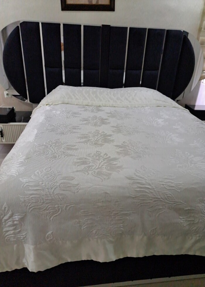 Yatak örtüsü yeni çok az kullandım çok hafif s bir sarii leke var rahatsız etmiyor ...iki yastık örtüsü de var