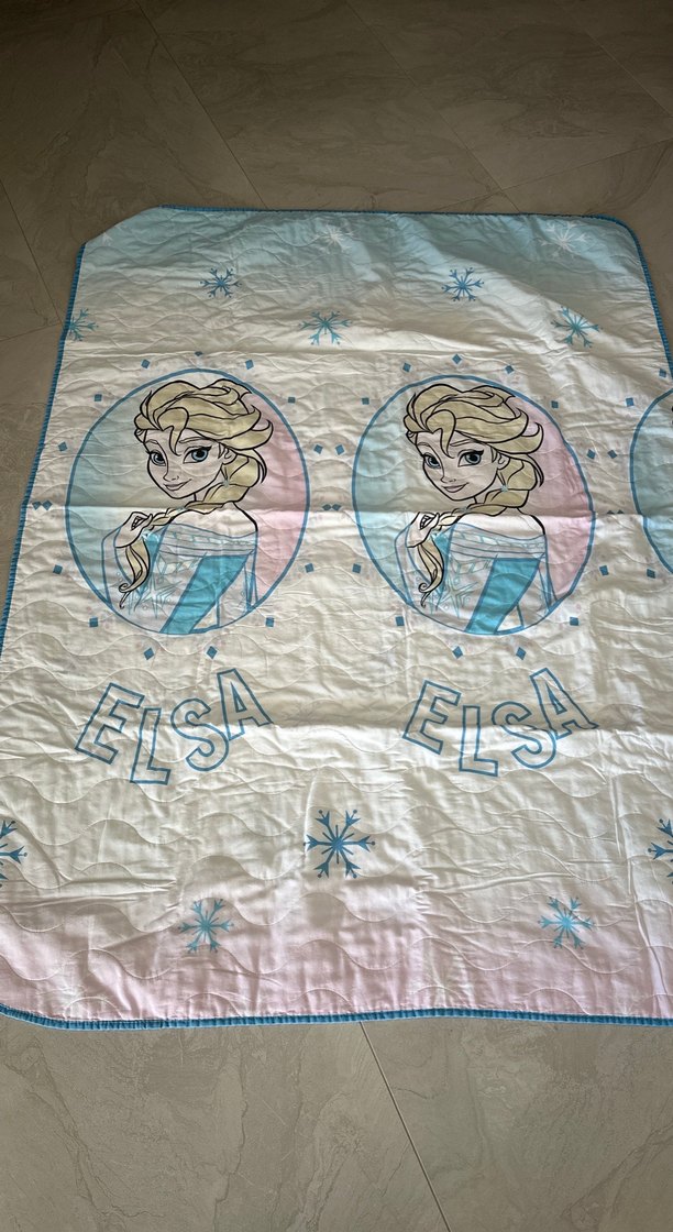 Pastel beyaz zemin üzerine Elsa karakterleri ve kar taneleri baskılı