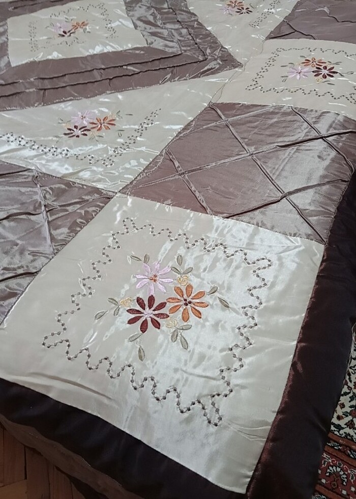 Hediye geldi hiç kullanılmadı.patwork yatak örtüsü çantasıyla gönderilecek tır.ceyiz için iyi bir alternatif