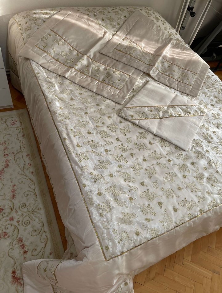 Sıfır ürün. Kendi çantasında hasarsız. Görsel amaçlı serilmiştir. Hiç kullanılmadı. 4 parça; 1 adet yatak örtüsü, 2 adet yastık kılıfı, 1 adet kare yastık