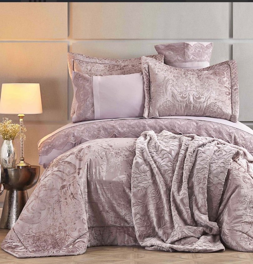 Karaca home valeria best gül kurusu yatak örtüsü seti 2 yastık kılıfı 50x70cm 1 yatak örtüsü 270x260cm oluşmaktadır %100 polyesterdir Çeyizim için almıştım çok seçeneğim olduğu için hiç kullanmadım İsteyene serip fotoğraf gönderebilirim