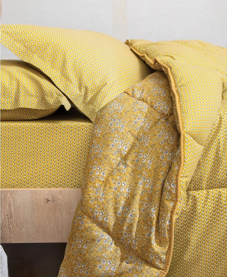 Yataş sıfır paketli çift kişilik sarı yorgan. ölçü 195*215 dış tarafı yüzde yüz pamuk kumaş, iç dolgusu silikonize elyaf