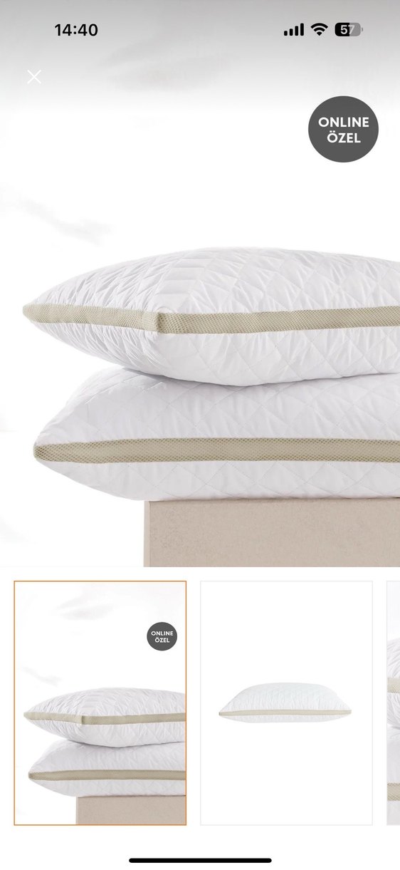 Düz beyaz yüzeye ve bej şerit detayına sahip, konforlu destek sunan yastık. Online en çok favorilenenler arasında. ️