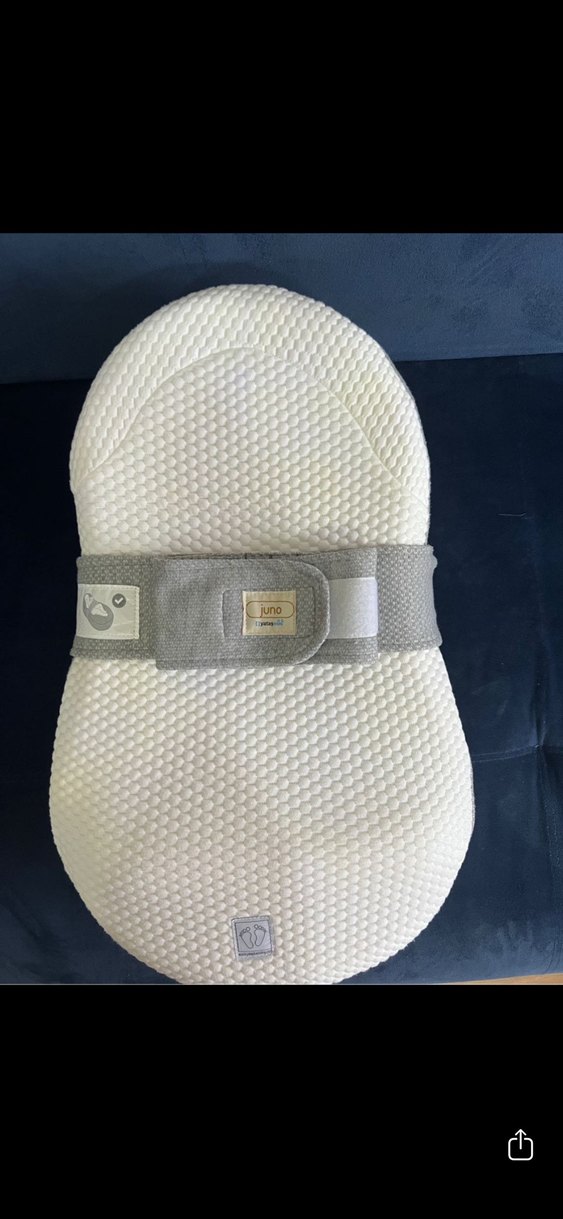 Beyaz dokulu yüzeye sahip, gri ayarlanabilir bantlı emzirme ve hamile yastığı. Hafif yılan deseni ile dikkat çeker.