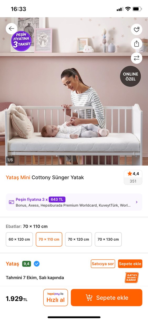 Yataş Mini Cottony sünger bebek yatağı, beyaz renkte ve 70x110 cm dahil çeşitli ebatlarda mevcuttur. Yumuşak ve konforlu yapısı ile bebekler için uygundur. ️1 sene kullanıldı fermuarlı çıkarıp yıkanabiliyor