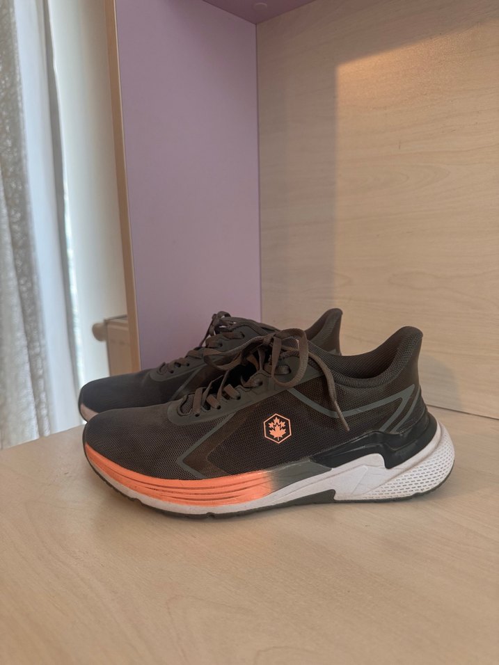 Kadın spor ayakkabısı, Spor ve sokak stiline uygun. Gri renktedir tabanında yavruağzı rengi detay mevcut ürün çok az giyildi 37 numaradır sporlarda yürüyüşte ya da normal günlük hayata uygundur sökük yırtık mevcut değil sadece ayakkabının içindeki tabanlıkta sadece hafif silinme oldu o da fotoğraflarda mevcut zaten görebilirsiniz ama tabii ki de siyah ya da gri bir tabanlık alıp yenileyebilirsiniz onun’un dışında rahat bir ayakkabı
