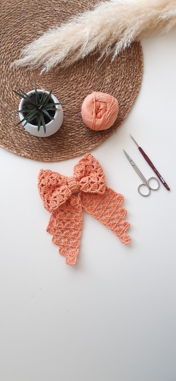 örgü kumaştan yapılmış fiyonk detaylı vintage bohem tarzda saç aksesuarı.