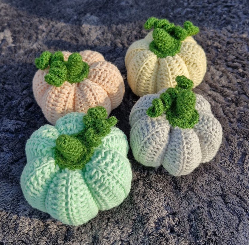 Yumuşak örme dokusu ve yeşil sap detayıyla kabak şeklinde tasarlanmış gri renkte anahtarlık ve iğnelik. Boyutları avuç içi kadardır.