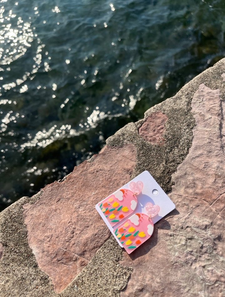 Küpenin arkadaki iğnesi 316L paslanmaz çelikten üretilmiştir, bu nedenle hipoalerjeniktir ve hassas ciltler için uygundur. Küpenin ön kısmı ise akrilik malzeme üzerine pirinç boya ile renklendirilmiştir. Küpemizin iğne kısmı oldukça narindir dikkatli kullanım gerektirir.