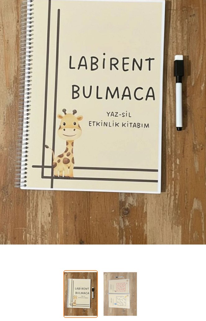 9 Labirent – Kolay / Orta / Zor – Kalem Hediyeli – Laminasyonlu Çocukların dikkat, problem çözme ve odaklanma becerilerini geliştirmek için hazırlanmış laminasyonlu yaz-sil labirent kitabıdır. K itapta kolay, orta ve zor seviyelerde toplam 9 farklı labirent bulunur. Çocuk, verilen başlangıç noktasından çıkışa ulaşmak için yolu bulur ve isterse tekrar tekrar silebilir. Ürün Özellikleri 9 sayfa labirent bulmaca Kolay – Orta – Zor seviye karışık Yaz-sil kullanım (tamamen laminasyonlu) Yaz-sil kalem hediyeli Dikkat, yön algısı ve problem çözmeyi geliştirir Tekrar tekrar kullanılabilir, dayanıklı Eğlenceli, öğretici ve sınırsız tekrar yapılabilir bir labirent kitabıdır.