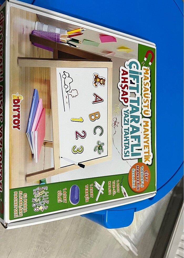 Kalemi ve tebeşiri var Manyetik alanı var Harfler ve rakamları yapıştırabilirsiniz İzmir içi elden teslim alabilirsiniz