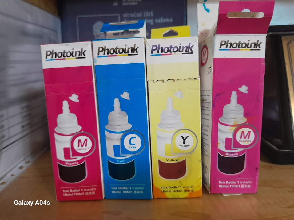 Photoink marka sarı mürekkep şişesi, renkli baskı için uygundur. 180ml mürekkep içerir. ️ yarısını kullandım. sadece siyah dolu.