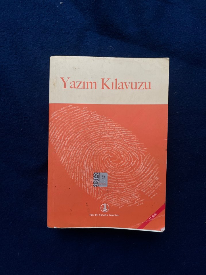 "Yazım Kılavuzu" adlı Osmanlıca kitap, yazım kuralları hakkında rehberlik sunar. Kapakta parmak izi görseli bulunur.