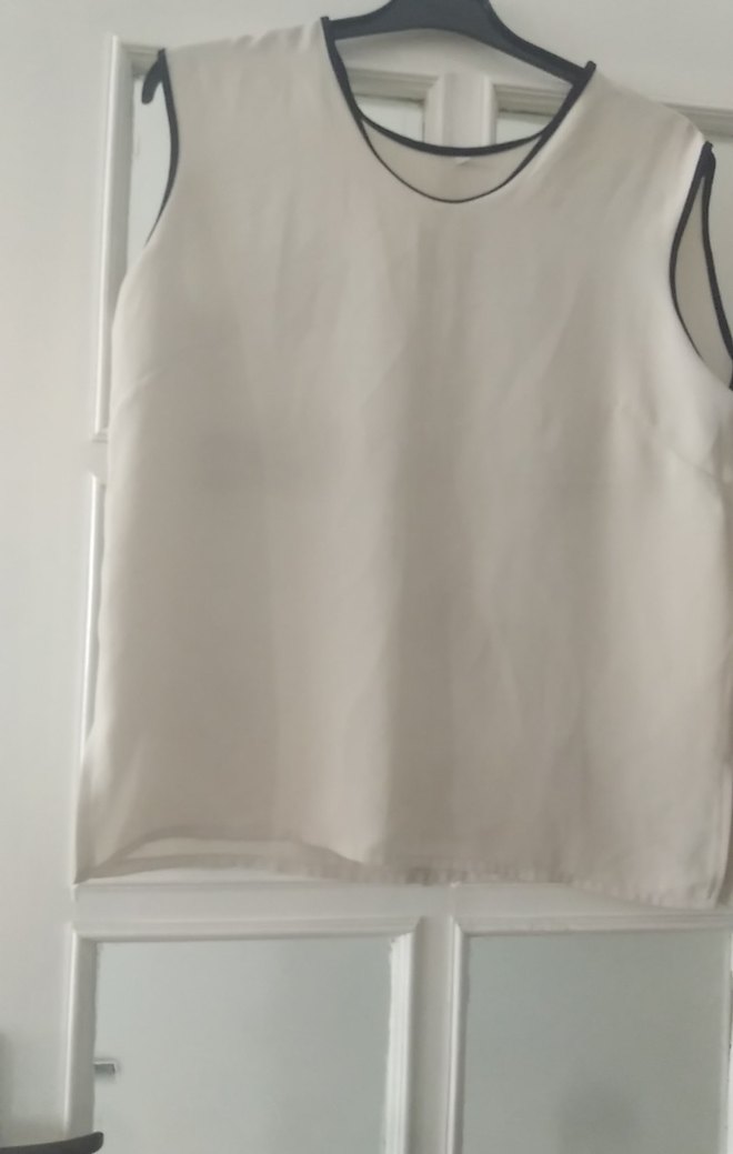 jile kollu yaka ve kolları siyah biyeli yazlık jarse kumaştan bluz