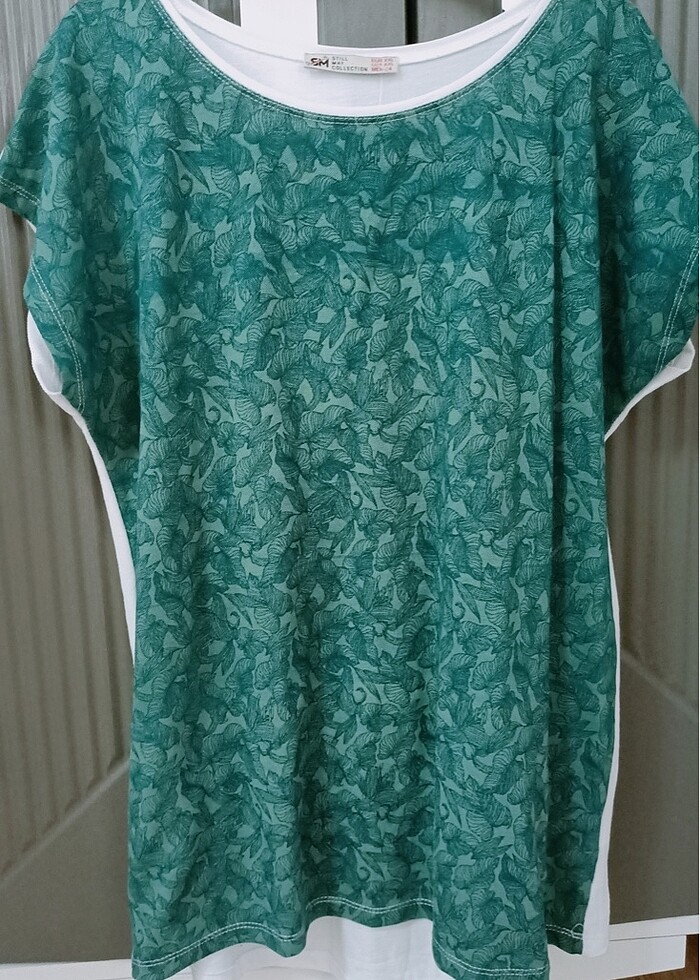 Önü yeşil arkası beyaz bluz etiketi 44 beden fakat kalıbı dardır #bluz #tişört #koton #mavi