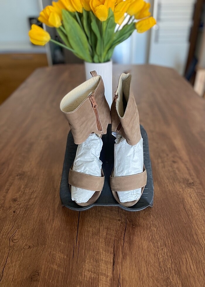 Ürünmde hiçbir sıkıntı yoktur deri bilekten bot şeklinde super rahat ayakkabı tam kalıptır #nud #bej #bot #yazlık bot