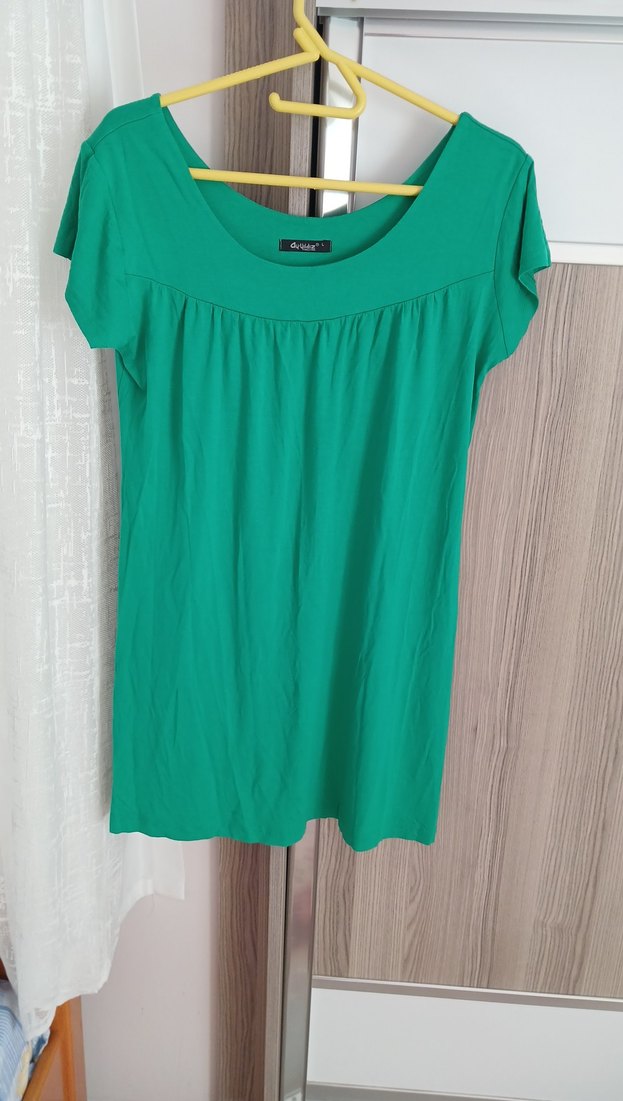 Yeşil renkli, kısa kollu, yuvarlak yakalı ve salaş kesim kadın elbıse Pilili detaylara sahip, midi boyda ve penyekumaştan üretilmiştir. Günlük kullanım için uygundur. 2 kol arası 52.boy 85 cm.