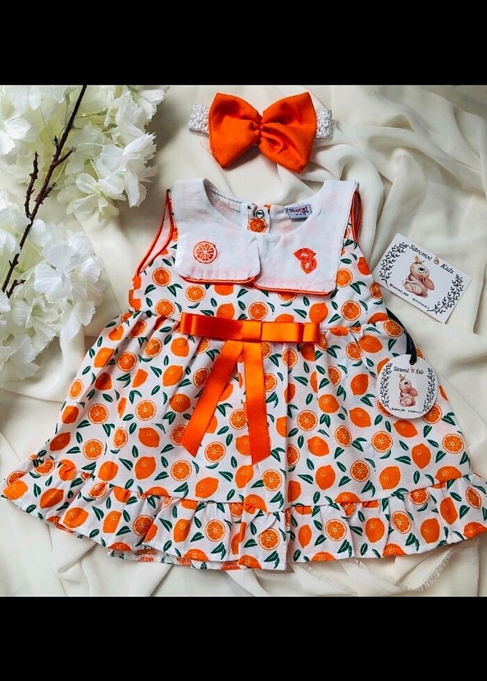 Ürün çekimleri bize aittir Portakal desenli yakalı kız bebek yazlık elbise 9-12 ay 12-18 ay 18-24 aylık bedenleri mevcuttur tam kalıptır