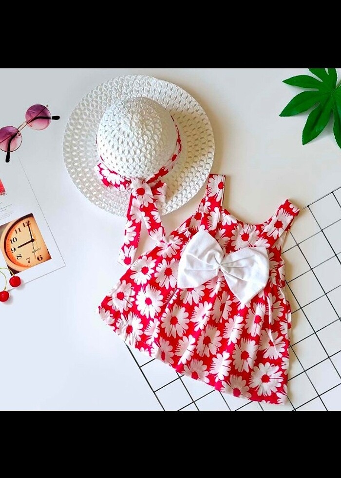 Büyük papatya Çicekli şapkalı yazlık kız bebek elbise 6-9 ay 9-12 ay 18-24 aylık bedenleri mevcuttur tam kalıptır Renk fuşya pembesi