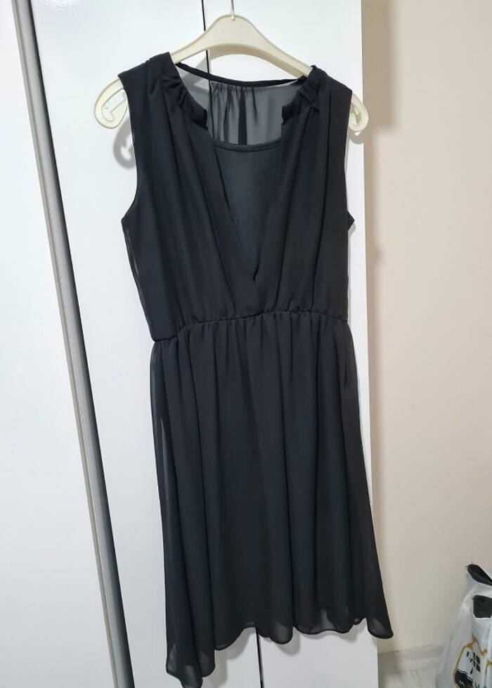 Astarlı yazlık elbise, astar boyu yaklaşık bir karış daha kısadır. 40-42 bedene kadar uyumludur